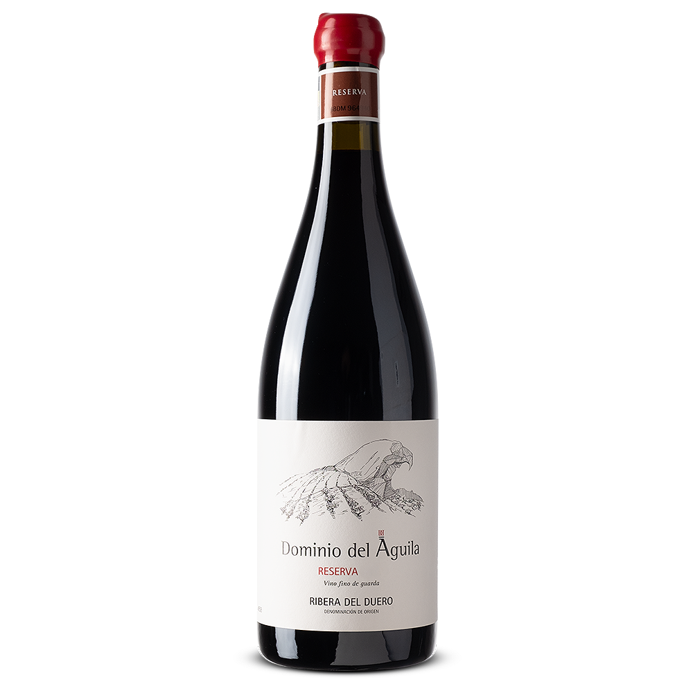 Dominio del Águila Reserva es un vino de Ribera del Duero elaborado por Jorge Monzón y María Martín a partir de viñas muy viejas de Tempranillo con pequeñas proporciones de Garnacha, Bobal y Albillo. Destaca por su profundidad aromática de fruta negra, especias y notas minerales, con una boca estructurada, elegante y fresca, taninos finos y un final largo que refleja la filosofía tradicional y minuciosa de la bodega.