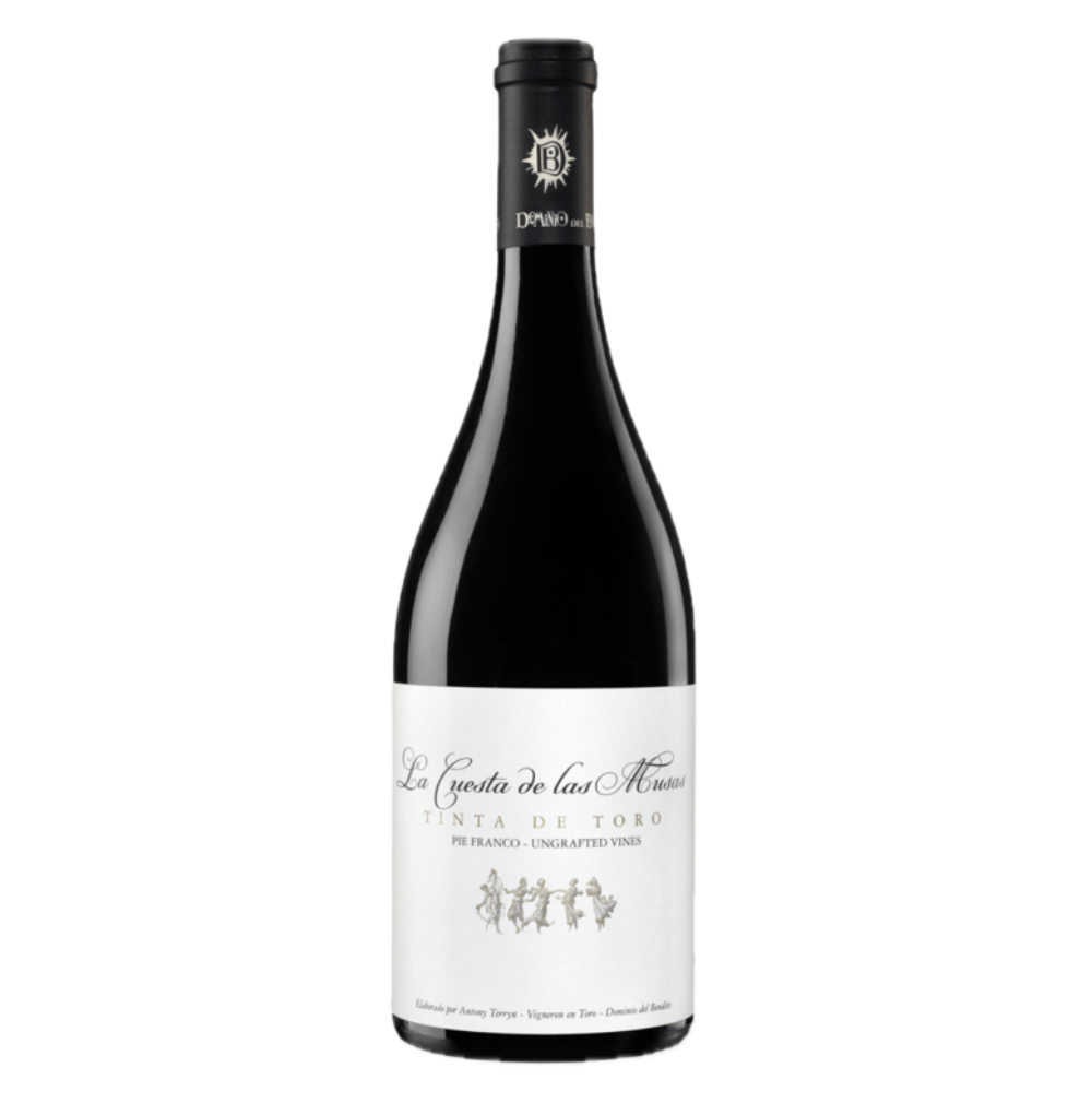 Cuesta de las Musas es el vino más exclusivo de Dominio del Bendito (Toro), elaborado con Tinta de Toro de viñas prefiloxéricas de altísima edad y bajísimo rendimiento. Presenta aromas muy complejos de fruta negra madura, especias, cacao, balsámicos y una marcada mineralidad. En boca es profundo, concentrado y elegante, con taninos sedosos y un final larguísimo que refleja la esencia más pura y grandiosa de Toro.
