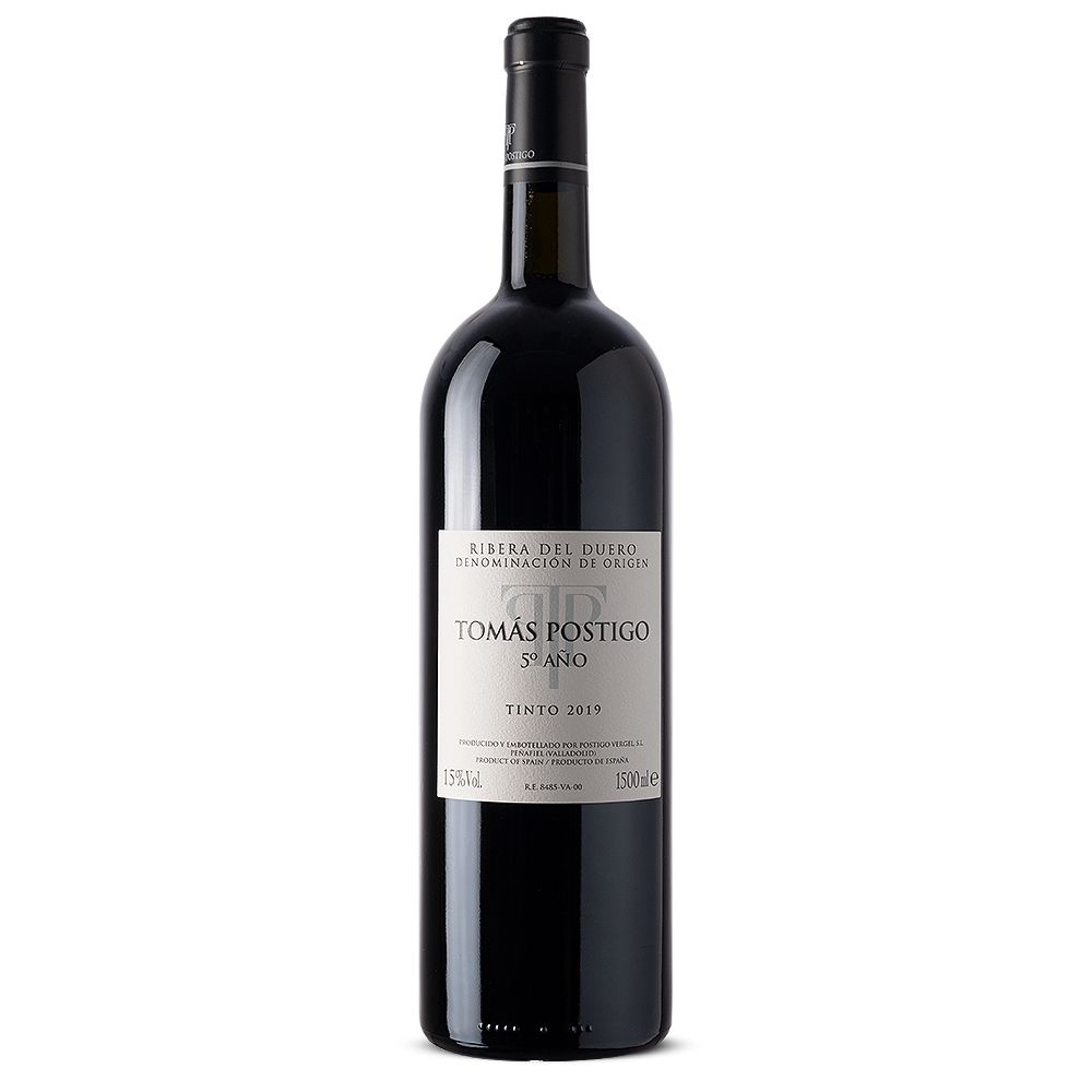 Tomás Postigo 5º Año es un vino de Ribera del Duero elaborado con una selección de Tempranillo, Cabernet Sauvignon, Merlot y Malbec, criado pacientemente durante cinco años. Presenta aromas complejos de fruta madura, especias finas, notas balsámicas y toques tostados, con una boca potente, equilibrada y elegante, taninos sedosos y un final muy largo que refleja su carácter de guarda.